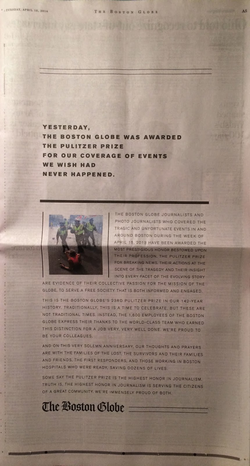 This day in the middle of April marks a lot of anniversaries, and most of them are pretty sad. Let's begin with the local news: the first anniversary of the bombings during the CXVII Boston Marathon.